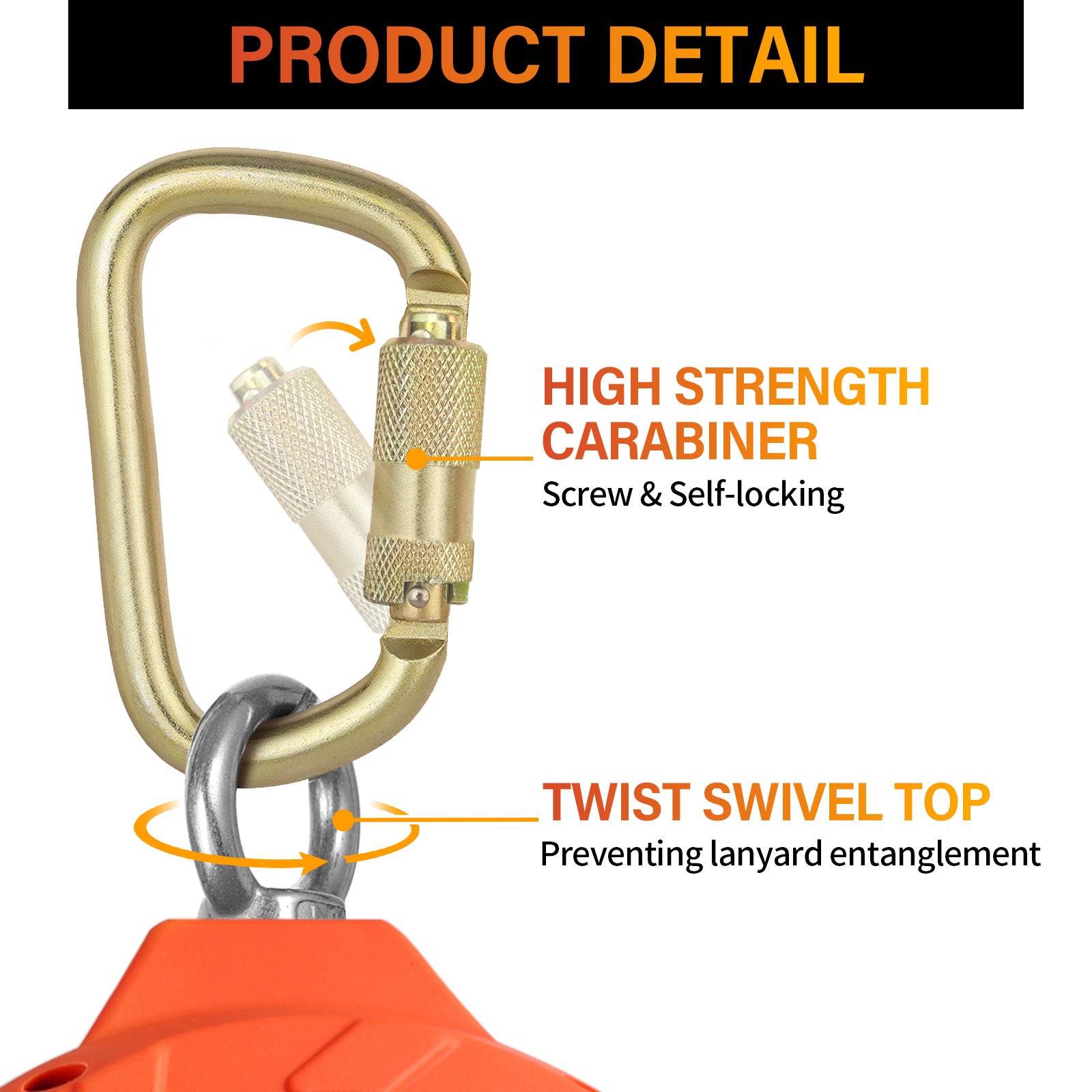 - TWIST SWIVEL TOP LOCK CARABINER: This robust, twist-and-lock carabiner with a rotating top makes your job for easy movement and positioning Crafted from sturdy steel, the carabiner features a dual-action automatic lock when hooked to its rotating top, ensuring extra safety when it's correctly hitched to an anchorage device or a reliable anchor point. Eliminates the need for a costly stand alone open swivel hardware connector.