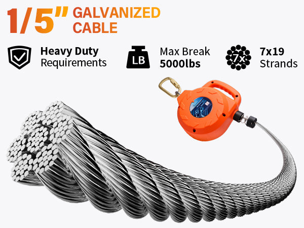 TRSMIMA Fall Protection Retractable Lanyard - 20ft/30ft Self-Retracting Fall Arrest Safety Construction Roofing Galvanized Steel Cable Swivel Top