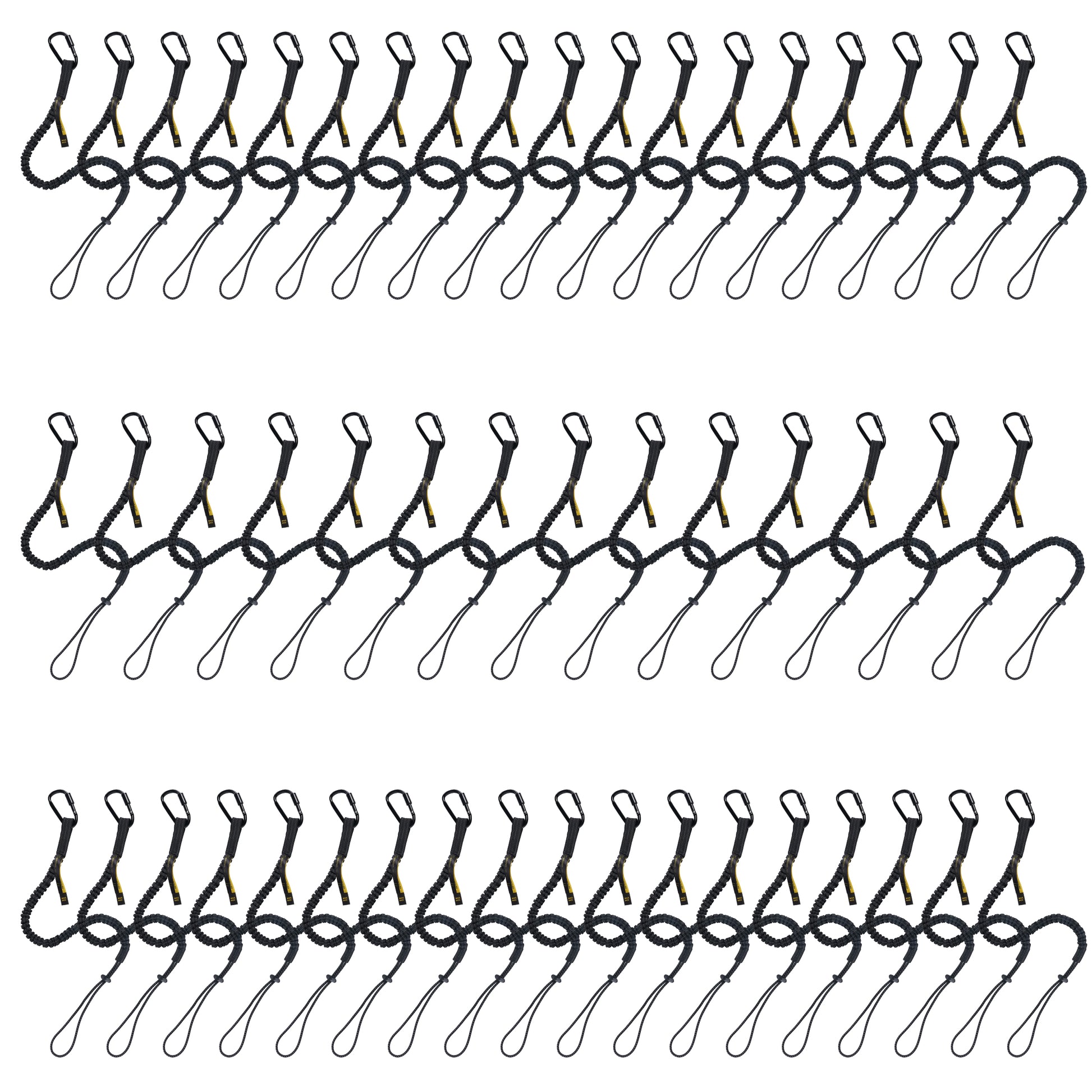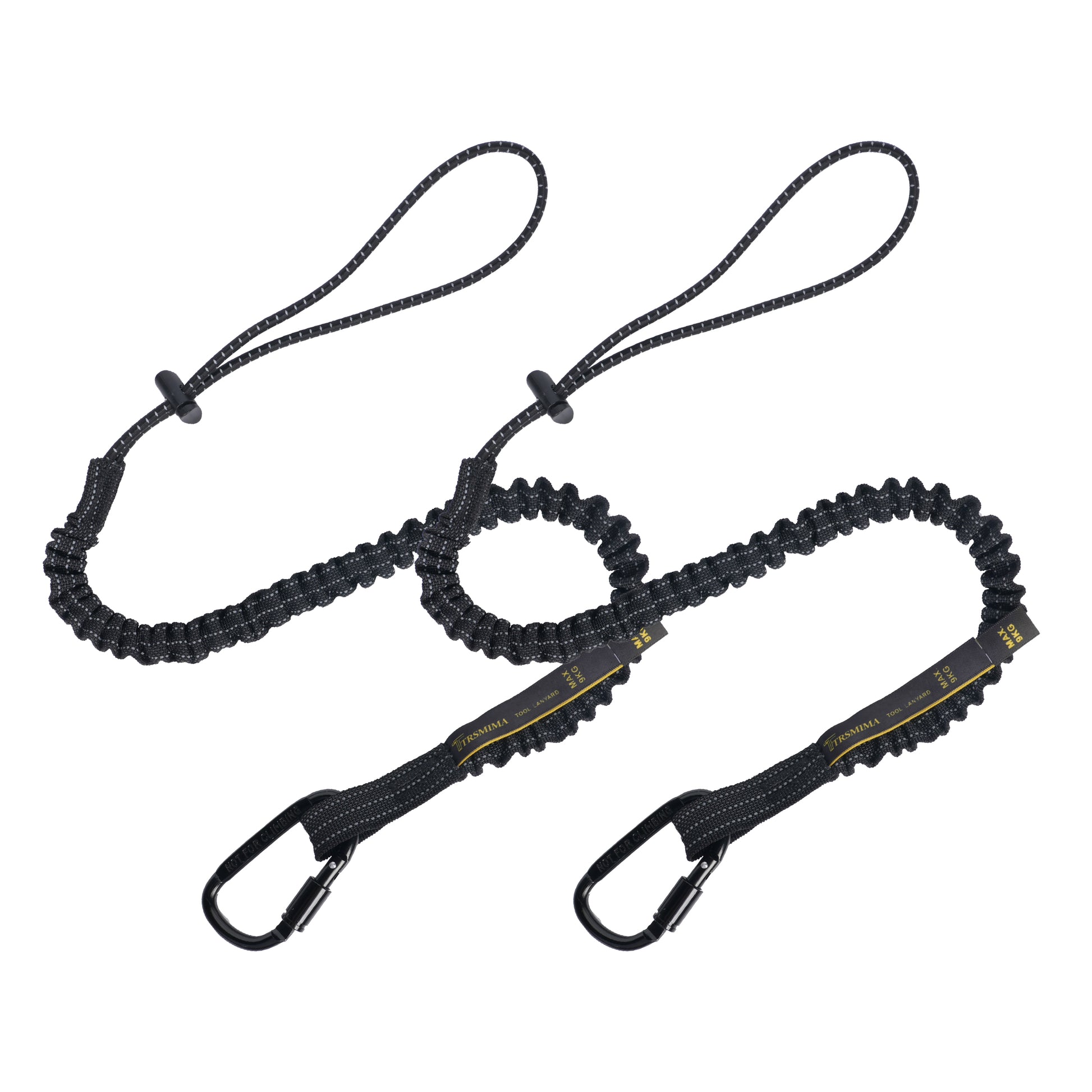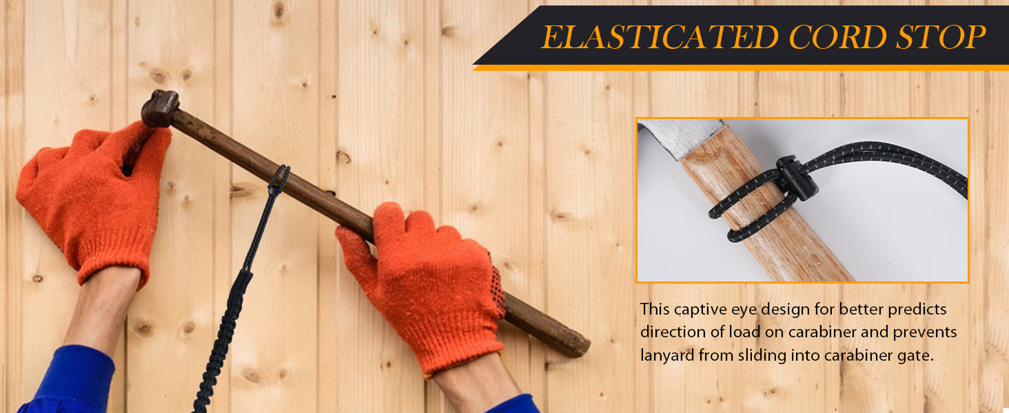 - PVC Cord Stopper :Our tool leash ensures a tough hold on the accessories, avoiding any accidents.connects securely to any tool's tether point through the double hole plastic plug.Captive eye design for guiding of load on carabiner and prevents lanyard from sliding into carabiner gate.