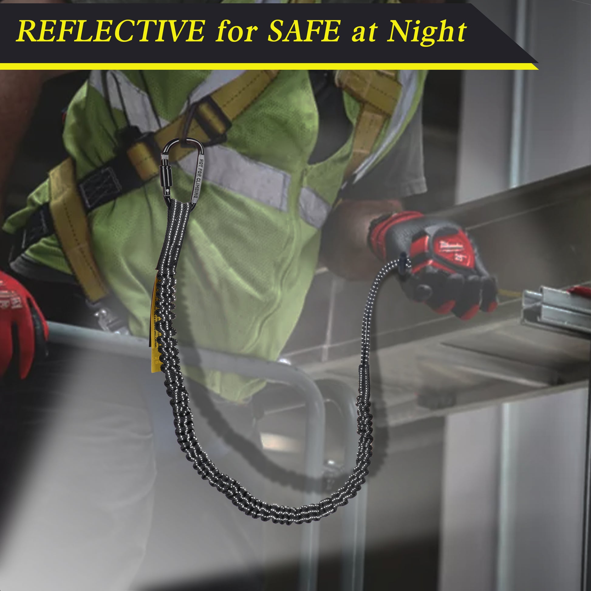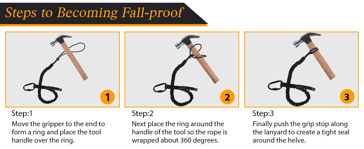 - APPLICATIONS: Safety lanyard can work with multiply tool kit, such as hand tools, drills, saws, wrenches, pliers, tape measures, hard hats, screwdrivers and hammers, to avoid tools from falling off roofs, ladders, trees or high building.