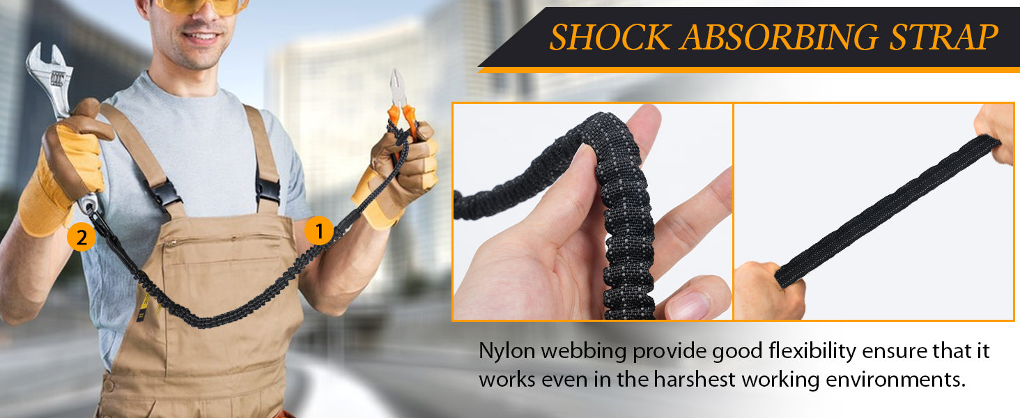 - ANTI-SLIP SHOCK ABSORBING STRAP: The tether lanyard enable minimises stretch resistance and maximum grip which more comfortable to use. Lanyard made of wear resistant nylon webbing provide good flexibility ensure that it works even in the harshest working environments.